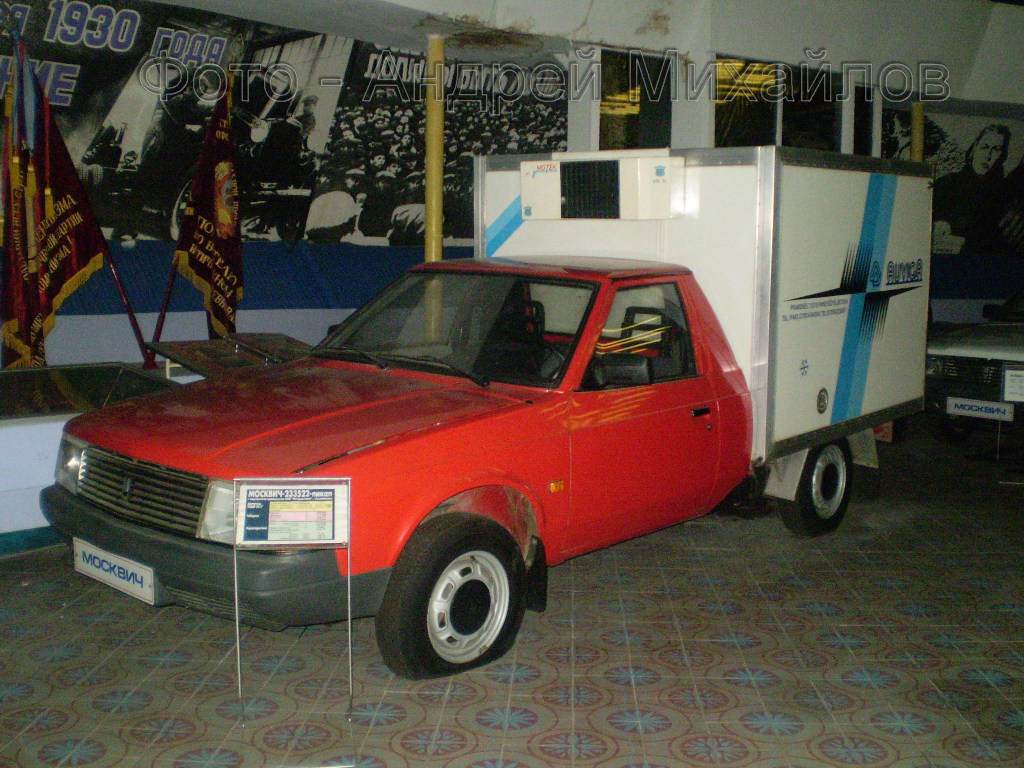«Москвич-2336» представлял собой пикап полурамной конструкции, планировавшийся к запуску в серию в рамках семейства «2141». Автомобиль не был запущен в серию, а один из опытных экземпляров экспонировался в заводском музее до самого его закрытия - фото1. По неизвестным причинам табличка гласила, что экспонируемый пикап носит обозначение «Москвич-233522», хотя данный индекс в действительности был присвоен другому автомобилю. |