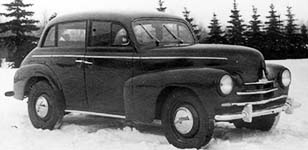 В 1949 году кузов модернизированного автомобиля «Москвич-401-424» был доработан. Он получил увеличенный багажник, новый капот, два альтернативных варианта более удобной для производства облицовки – один с горизонтальными хромированными полосами, только более редкими, чем в исходном первом варианте, другой – с овальным «окном», разделённым большим брусом.