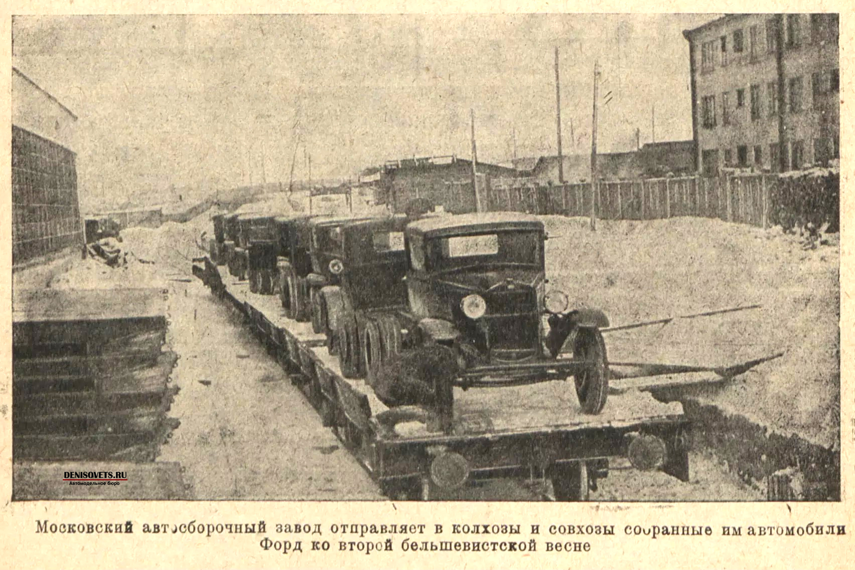 Первые «Форды», собранные в столице, были тоже образца 1928-29 годов (ранние деревянно-металлические кабины, более архаичные округлый капот и крылья, сильнее «надвинутые» на колеса), но комплектовались уже новыми 5-оконными колесными дисками. Они могли быть как с односкатными, так и с двухскатными задними колесами, в зависимости от предполагавшейся нагрузки. На одной из таких машин, полученной в 1931 году, водительница Слесарева из 3-го гаража «Мосавтогруза» прошла 50000 км без единой аварии, поломки или ремонта.