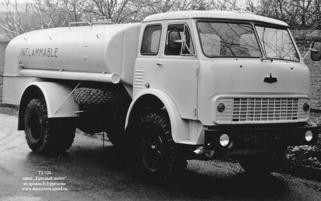 Топливозаправщик ТЗ-500 начал выпускаться Тихорецким заводом «Красный молот» в 1964 году, после освоения Минским автозаводом базового грузовика МАЗ-500. До 1966 года (до момента полного снятия с производства МАЗ-200), топливозаправщики ТЗ-200 и ТЗ-500 выпускались одновременно. Впоследствии, после модернизации базового шасси, в 1971 году был начат выпуск топливозаправщиков на шасси МАЗ-500АШ, а в 1977 году, когда 500-ое семейство МАЗов было модернизировано еще раз, с конвейера «Красного молота» начали сходить топливозаправщики ТЗ-500 на шасси МАЗ-5334.